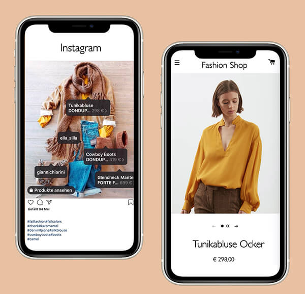 Deine Kollektions-Artikel kannst du nun mit Beschreibung interaktiv im Feed deinen Kunden zum Shoppen anbieten. Durch einen Klick gelangen deine Kunden direkt zum gewählten Artikel in deinem Shopify Online Shop.